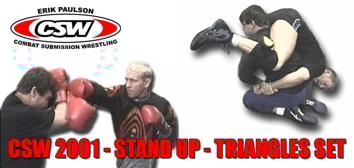 Erik Paulson’s CSW 2001 – Stand Up Volume 2. This video covers Striking, Kicking, and Takedowns. Section 1: 14 Point Cover Drill: 14 count drill to improve your boxing covers and slips. Section 2: Riding the Kick: Low, Middle, and High Line Rides. Section 3: Evading the Kick: Low, Middle, and High Evasions. Section 4: Shielding the Kick: Low, Middle, and High Shields. Section 5: Riding, Evading, Shielding, with Striking. Section 6: Takedowns & Tackles: Five methods to set up the takedown from a boxing structure.